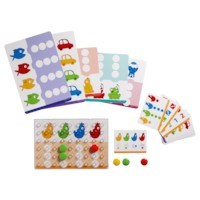 Place an illustrated board under each grid and give the child an activity card showing the same depiction: collections of circles, fingers held up, dots on a die, figure as written. The child fits the counters on the grid to carry out the instruction shown on the card. 24 activity cards of increasing difficulty are organised into 4 sets.