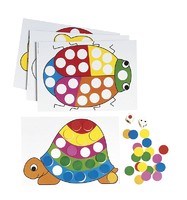 Each child completes his or her game board using coloured counters following instructions on the dice (spots and colours).