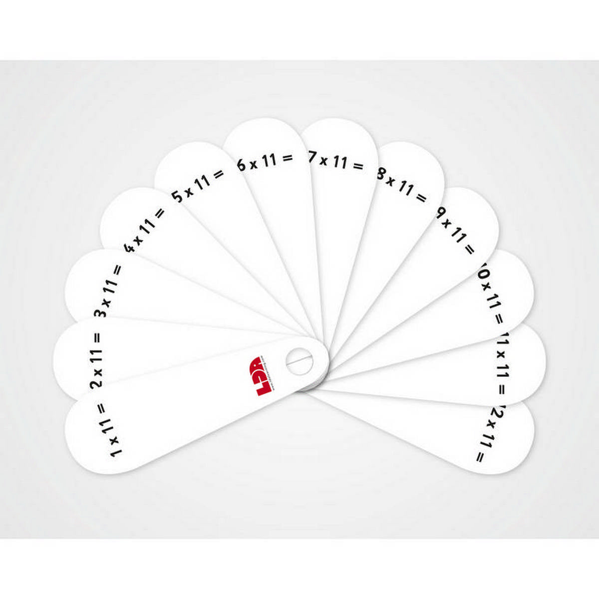 Make learning times tables fun. These high quality fans manufactured from durable plastic feature a times table sum on one side and the answer on the reverse. An excellent tactile resource to help children learn times tables. The fan design makes it the perfect resource to encourage and support instant recall of times table facts. 12 petals per fan. Riveted at the base for easy handling. Pack of 5. Size 115mm x 40mm