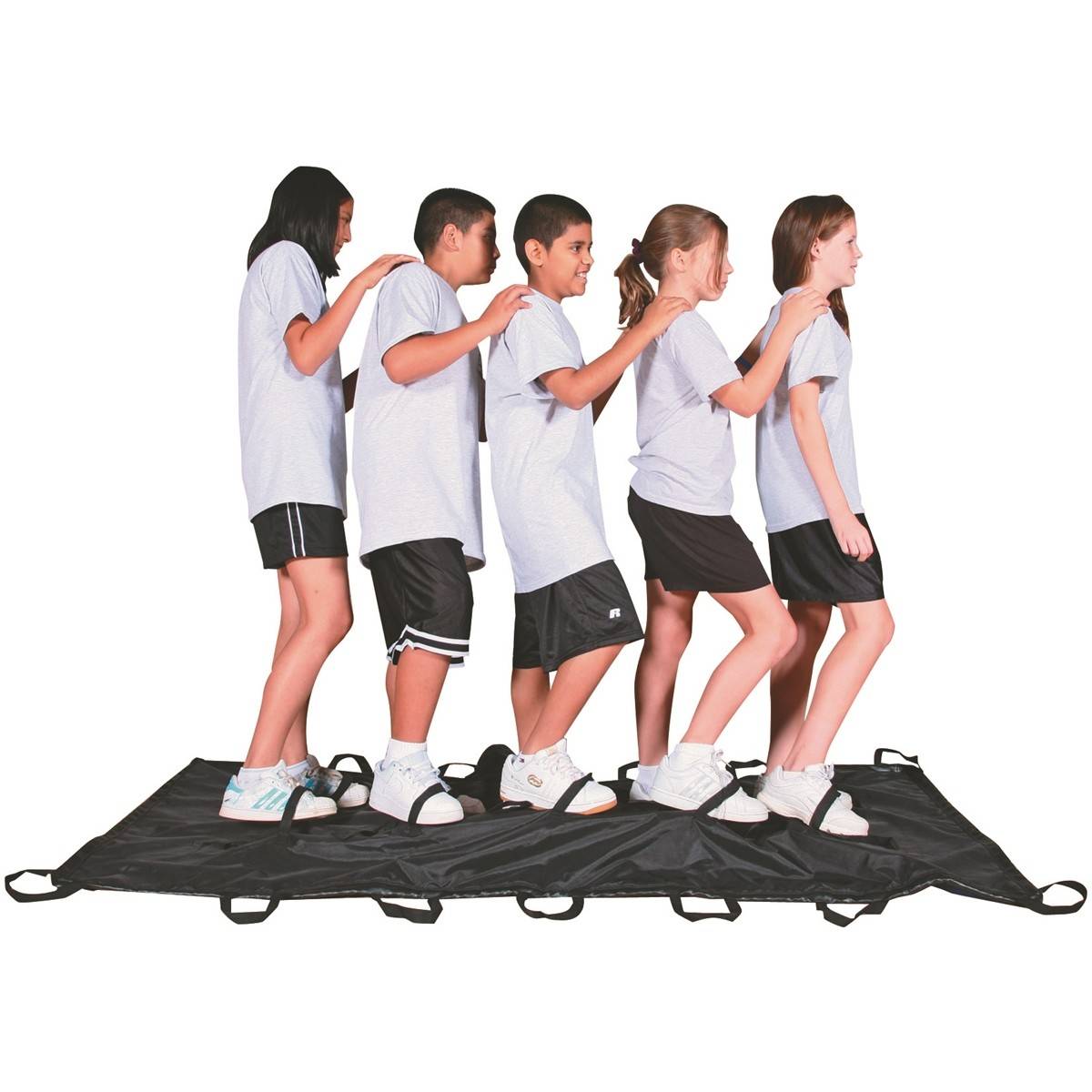 Moving the Blanket from one point to another requires a coordinated shuffle. This is done by all “shufflers†lined up using both the six pairs of horizontal and five pairs of vertical foot loops. The Activi-T-Blanket can also be used for other activities including groups competing to see who gets first to the other side of the gym or in an activity that requires some students to drag the “Blanket†with other students on it. The Blanket is made of highly-durable and washable nylon and polyester fleece materials and can be folded easily. Recommended age of users: 5-11.