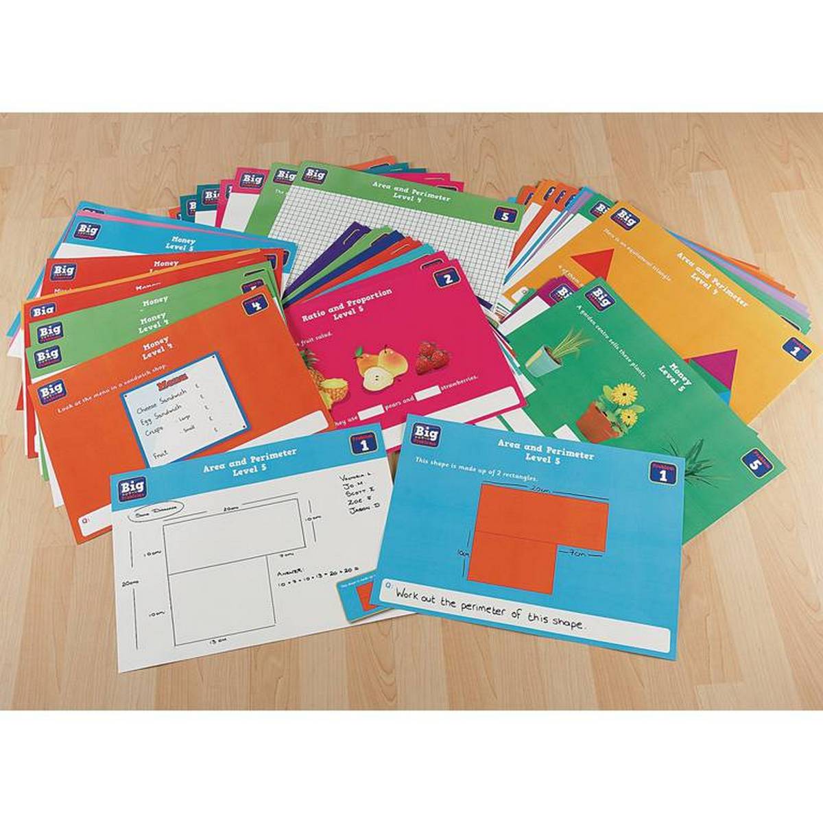 Use Big Problems to improve your pupils’ mathematical skills! Children work together on SATs type questions, sharing their knowledge and ideas, then presenting their workings to the rest of the class. Teach children problem solving strategies and see how they improve in a short time. Pack contains 60 A3 size laminated cards: 30 customisable ‘Problem’ cards, 30 student ‘Work Out’ cards, and teacher’s notes. Areas covered include Money, Area and Perimeter and Ratio and Proportion. Ideal for Upper Primary.