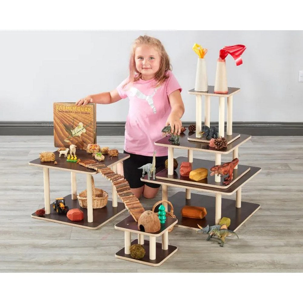 Are you ready for a prehistoric adventure? Build a Jurassic landscape filled with dinosaurs and rustic mountains, or let your learners dive into a dino land where tiny logs create a safe spot for fairies. The possibilities are endless with these rugged, flexible cable squares. Simply add a few accessories, such as short channels or tinkering natural resources, and let children’s imaginations take the lead!