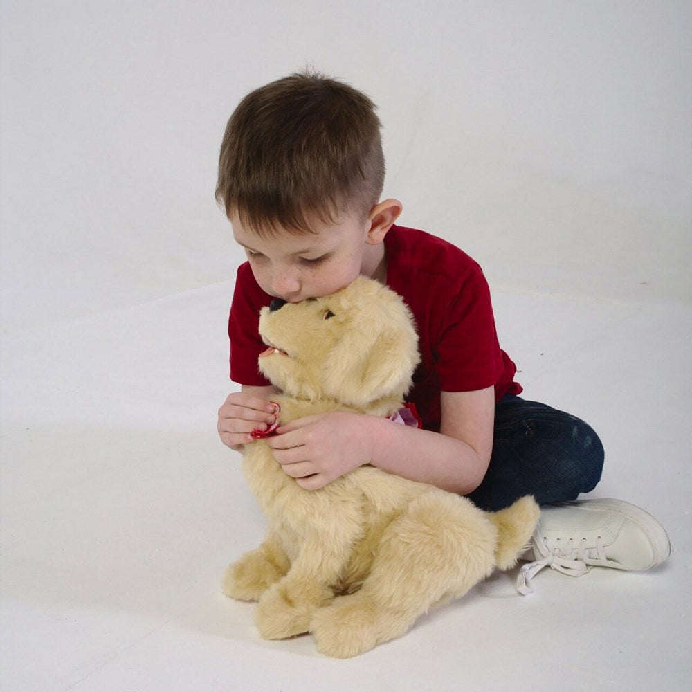 The robotic rewards sound, feel, and look like real dogs. They have clever built-in sensors that respond to motion and touch such as petting and hugging. The reward responds to your voice with 'bark back technology'. The pup has soft brushable fur and can open and close its eyes, open its mouth, move its head and body - it even has a heart-beat. The responses and sounds were developed by geriatric specialists to improve the bond between the user and the pet.