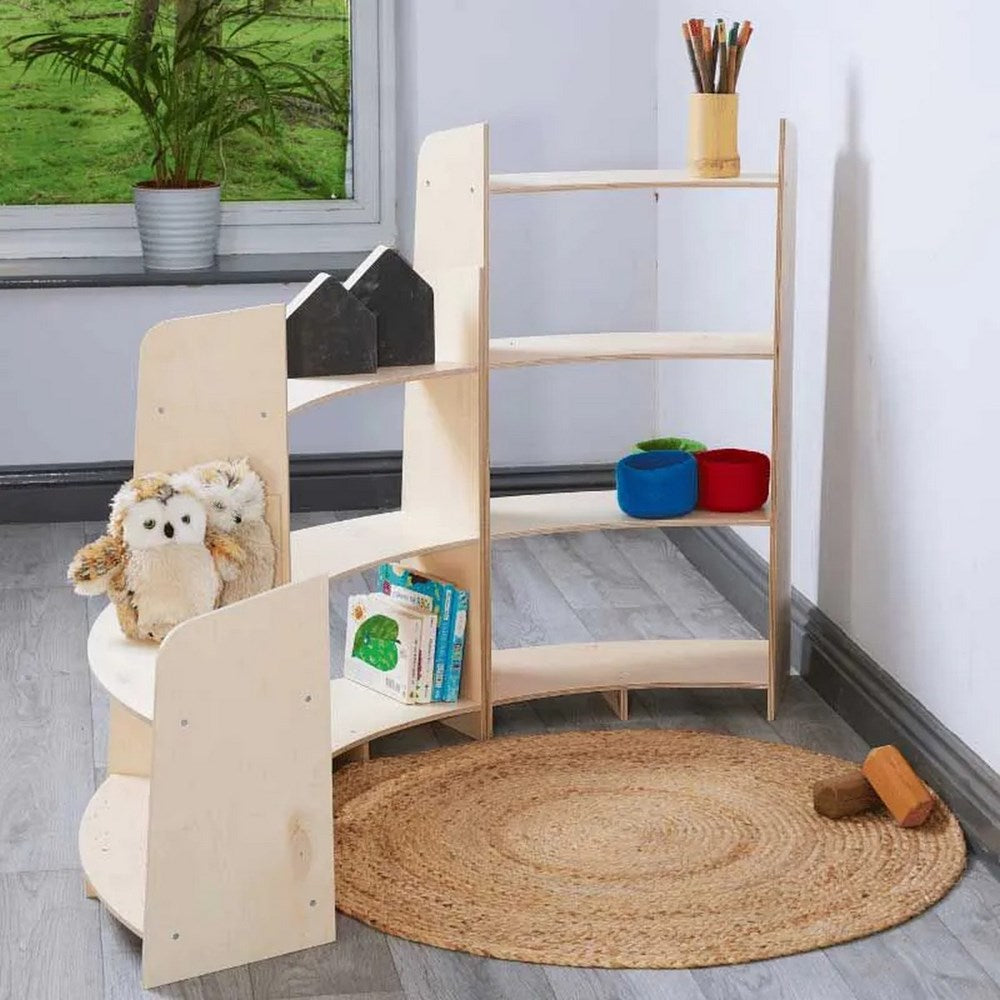The open design of the half curve units make it easy for children to access materials independently, promoting self-directed learning and encouraging exploration. Whether used as display shelves for showcasing student work, bookshelves for organising classroom libraries or storage units for manipulatives and learning aids, the possibilities are endless.