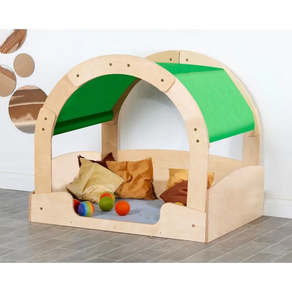 At a height of 93cm, width of 103cm and depth of 83cm, this cosy spot is ideal for young children, babies and toddlers. Children will love crawling up and finding a spot to relax, and with our added soft mat, they’ll never want to leave! Pair with our Fitted Fabric to add a cosy roof, or drape cloth, scarves and more to really enhance the play experience. Add soft cushions, books, balls and more to maximise play and relaxation!