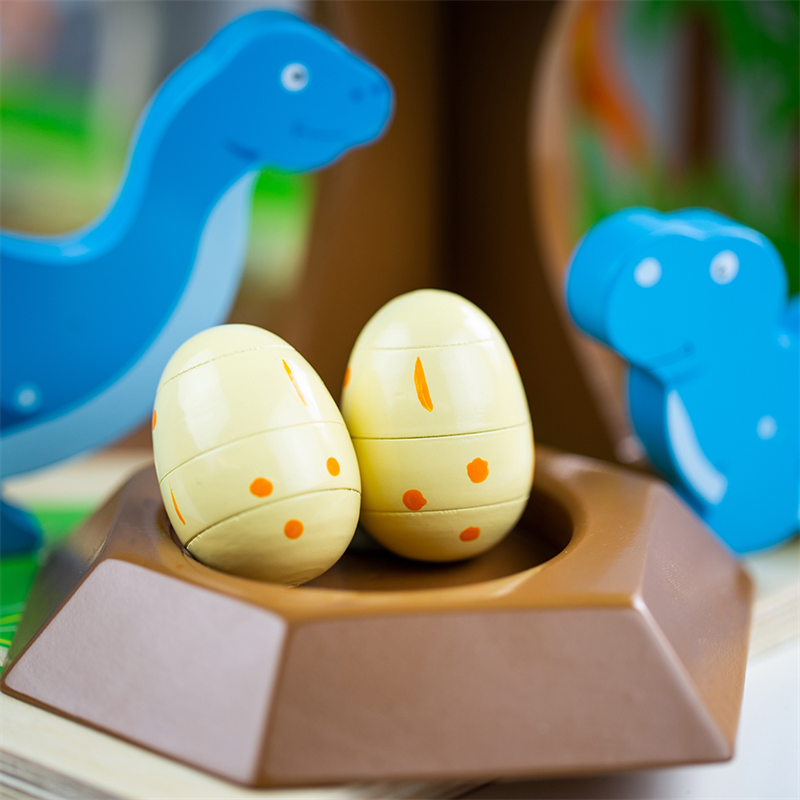 Travel back to a time when super-sized creatures ruled the world. This complete Dinosaur Playset includes 8 dinosaurs, a nest and 2 eggs, a waterfall and a freestanding tree all ready and waiting to provide hours of imaginative play. The freestanding tree is movable, and the dinosaurs include adult and baby dinosaurs and 2 pterodactyls. Hide behind the waterfall, climb the volcano or balance on the rocky ledges; but watch out for the lava! A fascinating, educational playtime is guaranteed with this complete prehistoric playset, as kids learn about the different dinosaurs and the history of when they existed. You're sure to have lots of inquisitive little ones! Simply slot together the wooden pieces, and the prehistoric land is ready for some seriously roarsome play! A great way to develop dexterity, imagination, social skills and coordination. Includes 13 play pieces. Made from high quality, responsibly sourced materials.