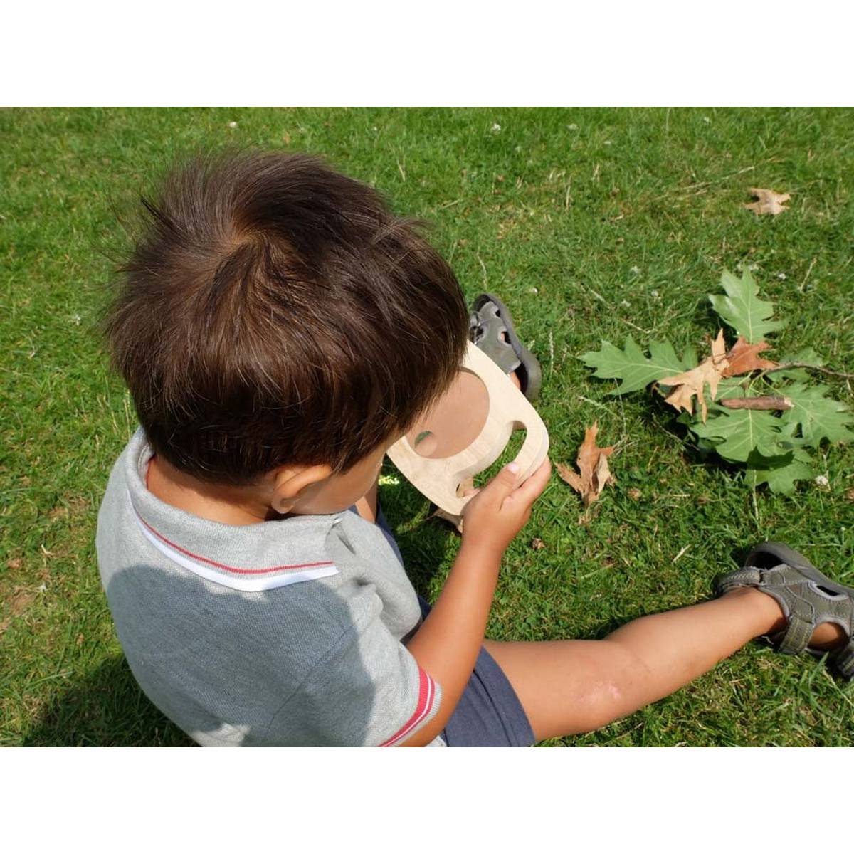 Hardwood frame with easy grip handles enclosing a magnifying lens offering 3x magnification (with an inset lens offering 5x magnification).