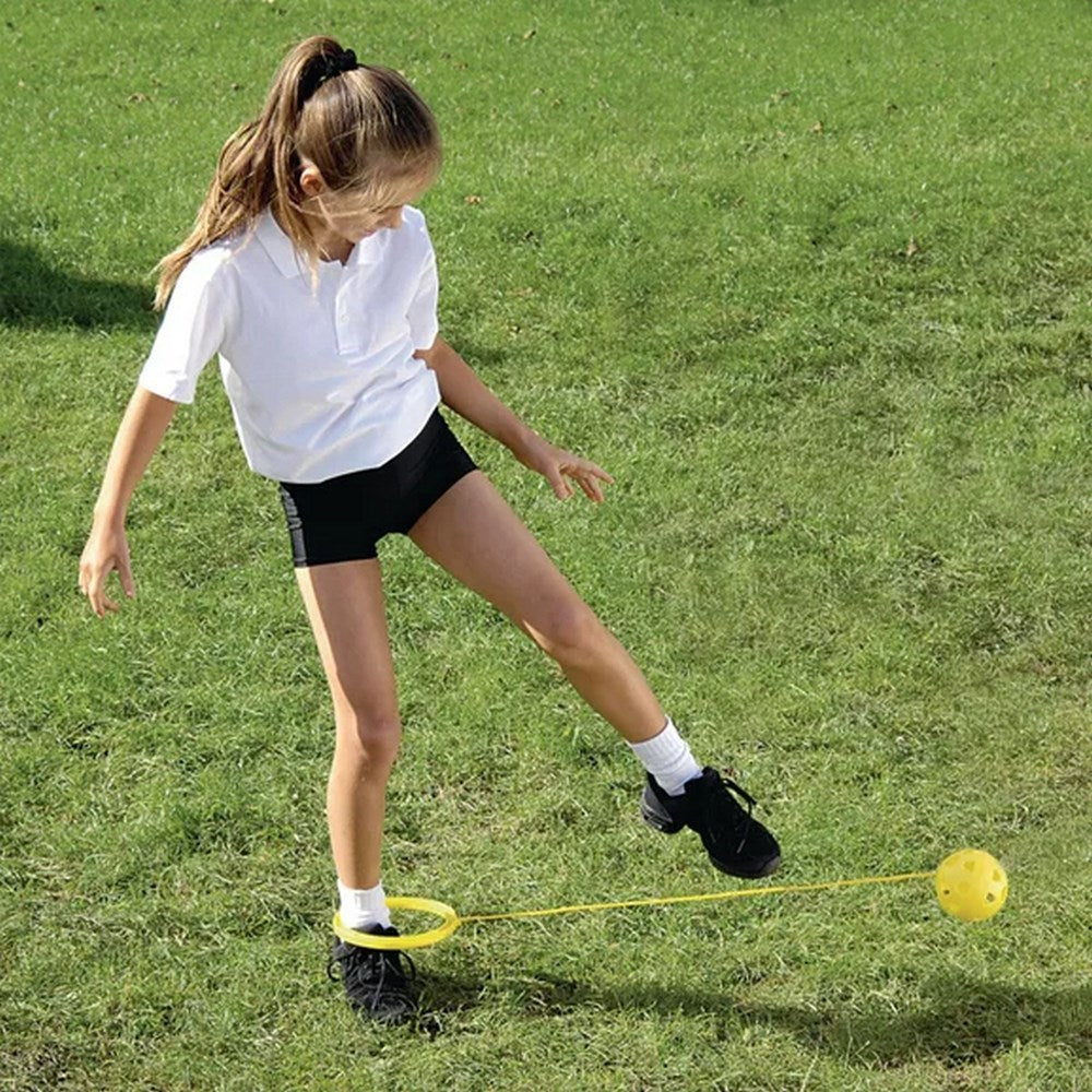 A hard-wearing plastic airflow ball attached to an ankle ring. This game will increase individual jumping skills and help co-ordination. Set of 6. 1 each of red, blue, green, yellow, orange and violet.