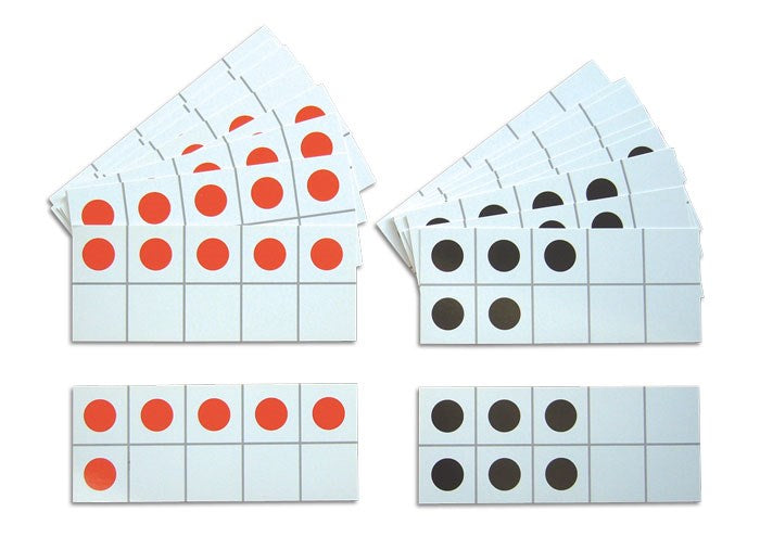- Each number to 10 is shown on two separate cards – one as a ‘five-wise’ arrangement (red spots) and one as a ‘pairs-wise’ arrangement (black spots)