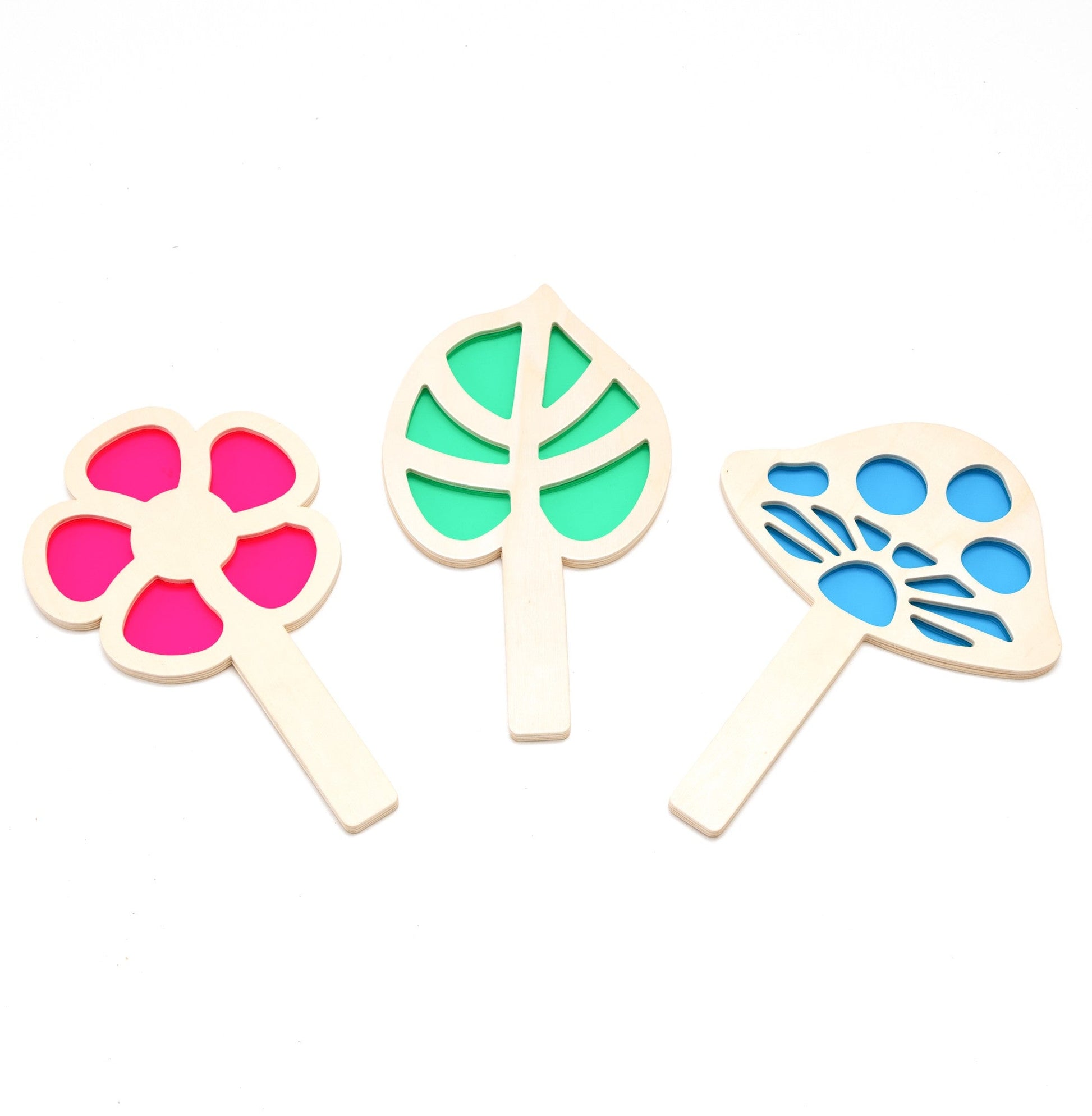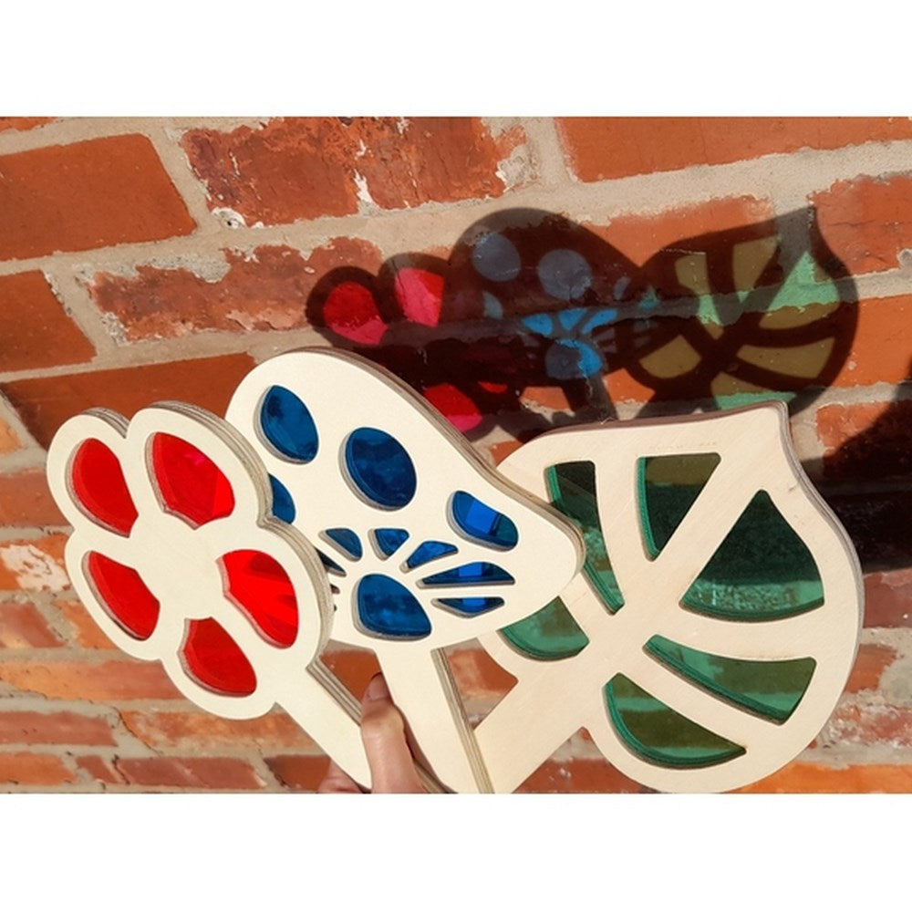 The Light and Shadow Creators Nature Pack can be used both outdoors and indoors for children to view different shades of light. Use natural sunlight, torches, a light panel or overhead projector to cast images of the three shapes on to the floor. Children will love to learn how light sources cast shadows and how they differ with how close you hold the product to the light. They can also be used during storytelling, puppet shows or small world play. Combine with our Light and Shadow Creators Minibeasts set to increase the colour mixing opportunities!
