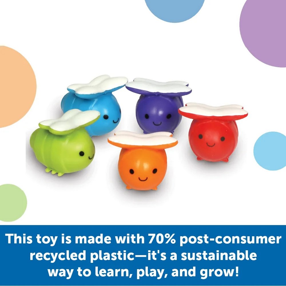 These balancing bees are buzzing with new preschool skills! Kids count, sort, and spin these friendly bees as they practice new fine motor skills. Fine motor tongs and wobbling flower help kids strengthen balance, coordination, and more. Plus, flower petals fold for easy storage. Includes colorful Activity Guide!