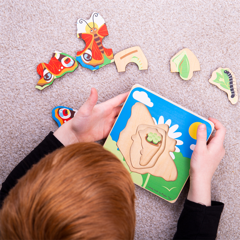 Our new layer puzzles are a fun, educational tool to learning how an egg turns into a butterfly, ladybird, frog and honeybee. Piece together and discover each lifecycle stage as little ones pull away each layer. Each puzzle has four lift out layers and is suitable from 2 years+. Made from resonsibly sourced materials and conforms to current ASTM F963 & European standards.