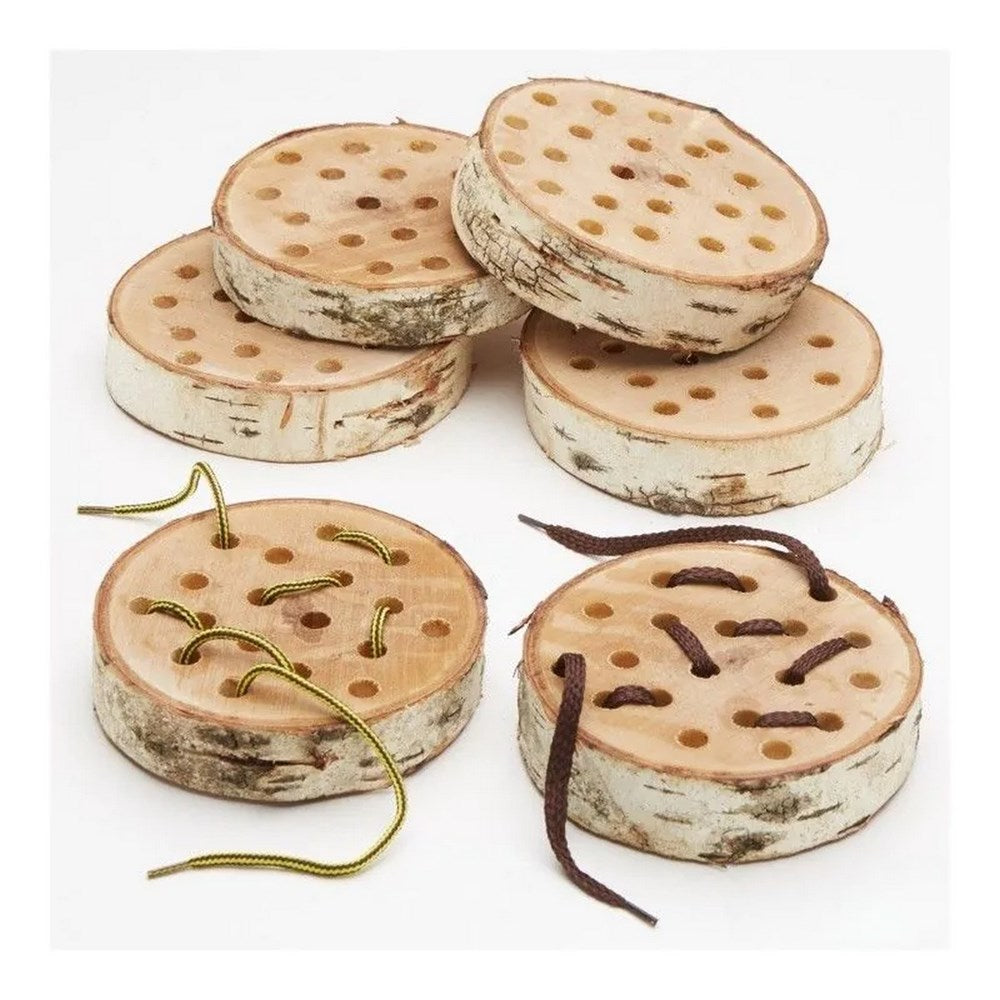 Perfect for those who love open-ended play, these threaders are designed to enhance fine motor skills and spark creativity. The smooth wooden discs are ideal for threading patterns, exploring textures, or building simple crafts. The organic finish and authentic imperfections make each piece one-of-a-kind, encouraging learners to engage with the beauty of natural materials.