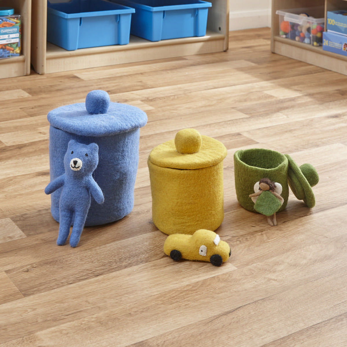 These 3 handmade, 100% Fairtrade, Natural Wool Sorting Pots come in 3 different colours with matching coloured objects inside, children will love the surprise that is hiding inside the pots and creating their own imaginative stories. Pots include 1 Blue Bear, 1 Yellow Car and 1 Green Fairy. Contents may vary. Age Suitability: 3 Years +
