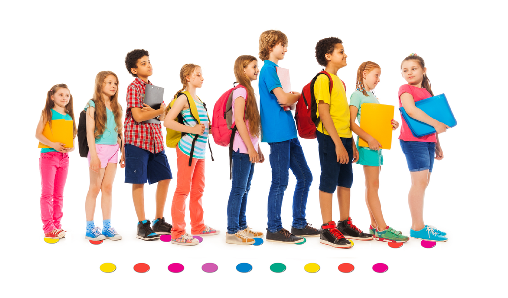 Use them to mark seating positions for story time, standing marks for lines or standing work, or improvise a quick game of TWISTER - the possibilities are limitless!