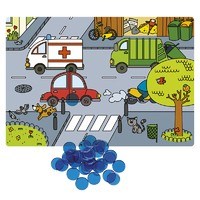 The children identify 48 sounds corresponding to situations from everyday life, then locate them with tokens on the illustrated game boards: the garden (backyard), the kitchen, the street, the playground, the woods, the beach. The sound sequences are presented twice: scene by scene, and then mixed up. The wide variety of sounds and situations encourages discussion among pupils.