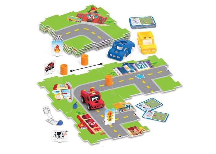 The programmable robot with 3-in-1 function is ready for rescue operations with programming fun! Now preschoolers can do a good deed with programming assignments and acquire first STEM skills at the same time with Switcheroo Coding Crew from Learning Resources at the same time. And so a rescue action with the programming toy takes place: the child draws a rescue task card, turns his programmable robot into one of three vehicles (police car, fire engine or construction vehicle) and programmes according to the card to save the situation! It also develops new skills without a computer, including STEM and programming skills and logical and solution-oriented thinking. If the child just doesn't want to save the world through programming actions, they simply put a new vehicle body on their programmable robot and discover great light sequences, sounds and tricks in game mode. Each vehicle body hides its own cool secrets. In addition to the proposed activities, the Switcheroo Coding Crew interactive 46-piece playset is also ideal for inventing and programming your own STEM and rescue tasks.