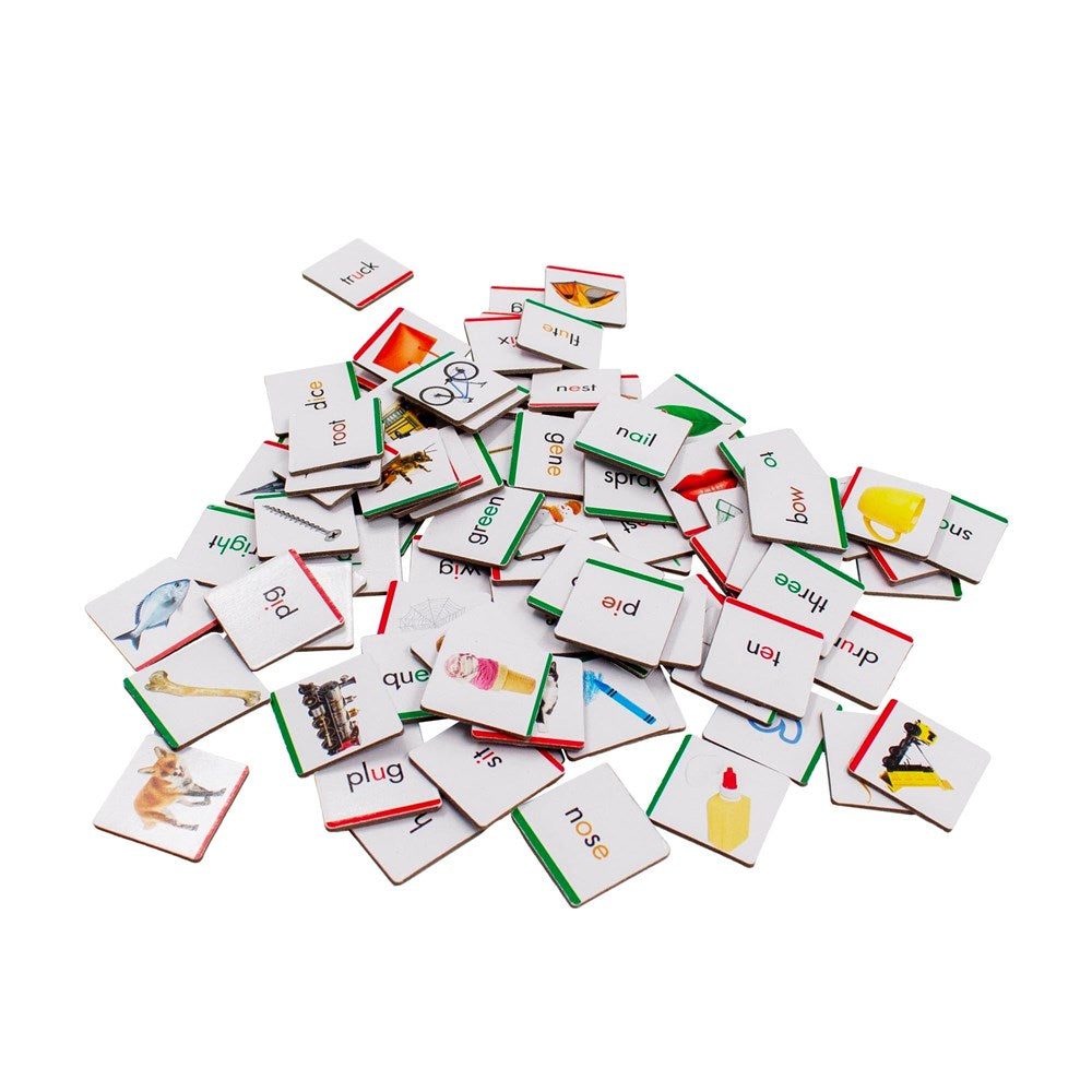 Explore different vowel sounds with Vowelcanos, the self-correcting vowel matching game. Each Vowelcano can be used for learning short or long vowels (printed on the front or back). Card tokens are double-sided, with image on one-side for developing phonemic awareness, and word on the other for building decoding skills. Includes 5 double-sided volcanoes, 100 card tokens and an activity guide with the grouped answers. An amazing resource for learning the various vowel patterns that can make the same sound.