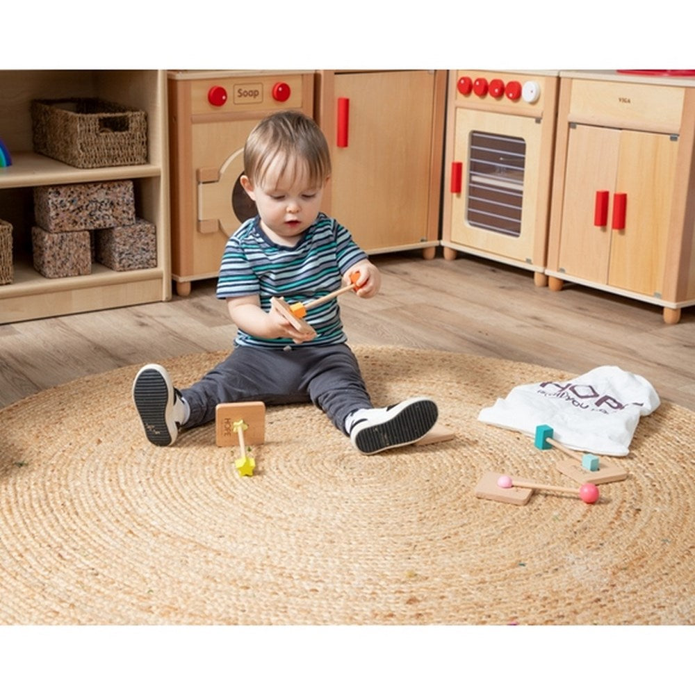 Unlock a world of imagination and early learning with the Wooden Shape Keys from Hope, featuring five captivating shapes – Rectangular prism, Cube, Sphere, Triangular prism, and Star. Crafted with precision from sustainably sourced natural wood, these keys are designed to engage young minds and stimulate cognitive development through shape recognition and problem-solving. With each key, children embark on a tactile adventure, exploring the unique contours and textures of each shape while honing their fine motor skills. To keep these treasures organised, we've included a Hope-branded cotton bag for storage.