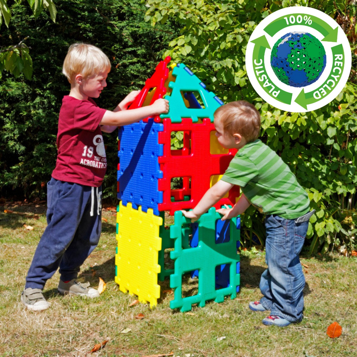 Ideal for building your first outdoor tower or house. Teaches shape and space through play.